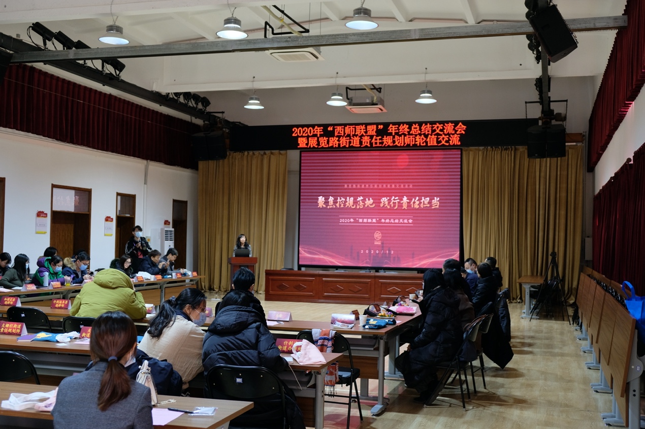 12月18日下午,2020年“西师联盟”年终总结交流会暨展览路街道责任规划师轮值交流活动在展览路街道党群服务中心举行。本次活动由展览路街道责任规划师团队领衔责任规划师、qm球盟会副董事长张大玉教授牵头,联合展览路街道办事处共同主办。北京市城市规划设计研究院名城保护中心顾问冯斐菲,北京市规划和自然资源委员会西城分局局长倪锋,展览路街道办事处工委副书记、办事处主任刘耀雍,展览路街道办事处副主任张伦生,西城区各指挥部代表、各街道代表、各责任规划师团队共50余人出席活动。