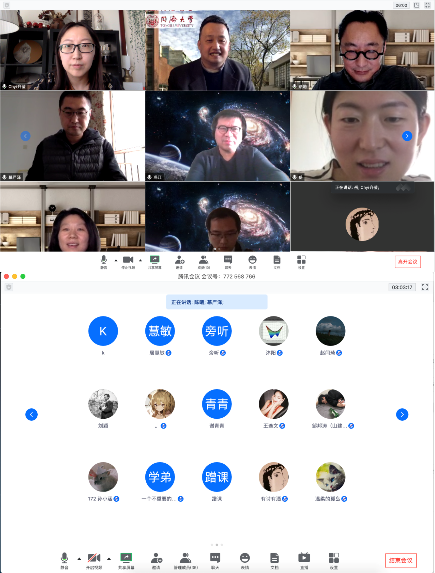 中期答辩师生网络合影(部分)