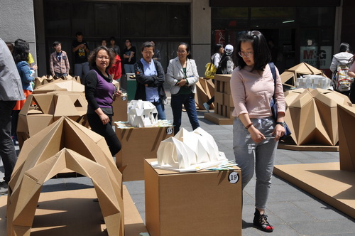 本次模型评选活动由专业教师评审和大众评审两部分组成,专业教师主要从结构稳定性、构造细节与制作工艺、艺术造型、内部空间与光线四个方面对模型进行打分评比。大众评审的手中握有一定的票数,可以贴在自己心仪的作品上,得到票数最多的作品将会获得“最佳人气奖”的称号。大众评审由除球盟会大一员工以外的校内师生以及周边居民共同组成,评审场面异常火热。