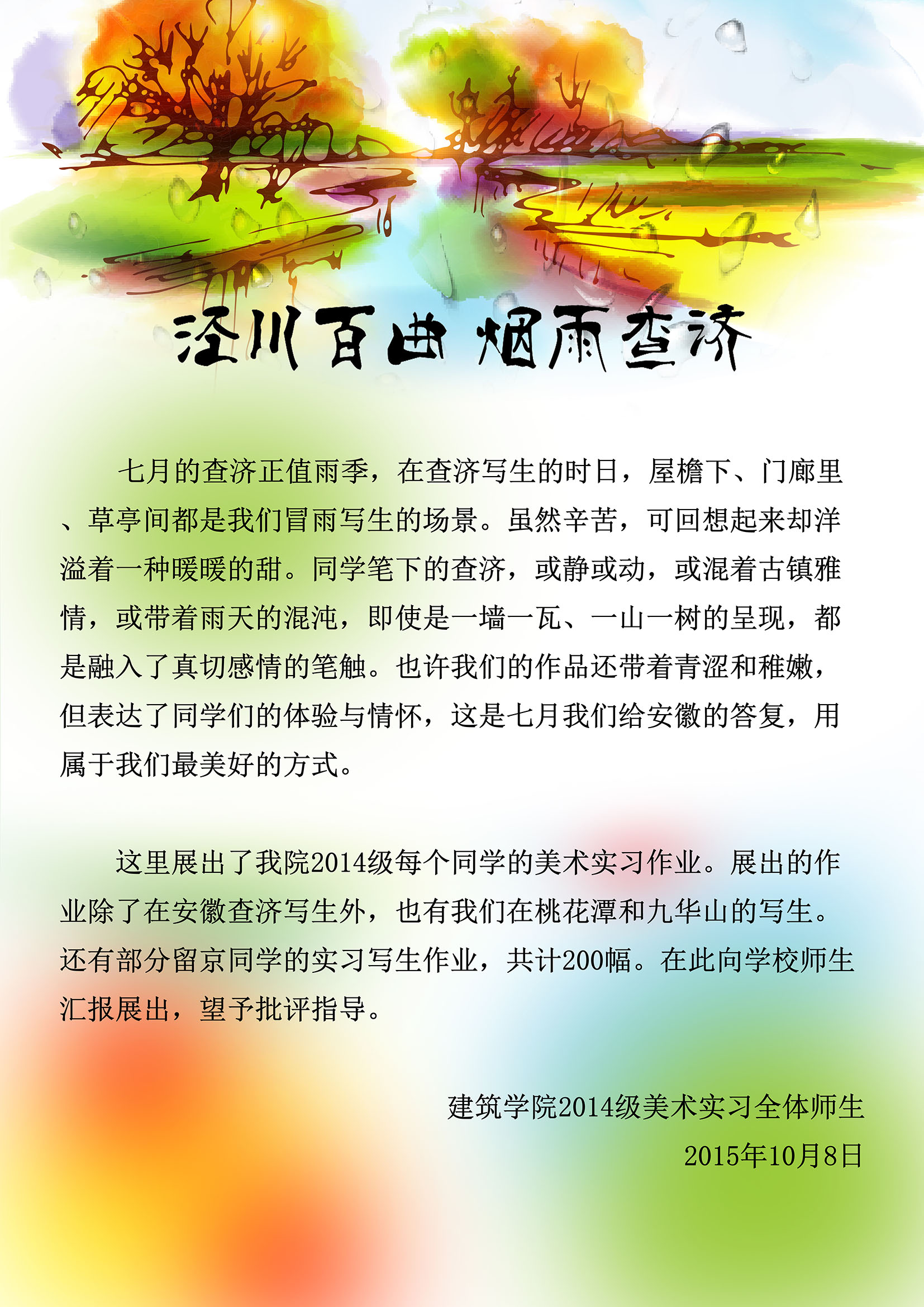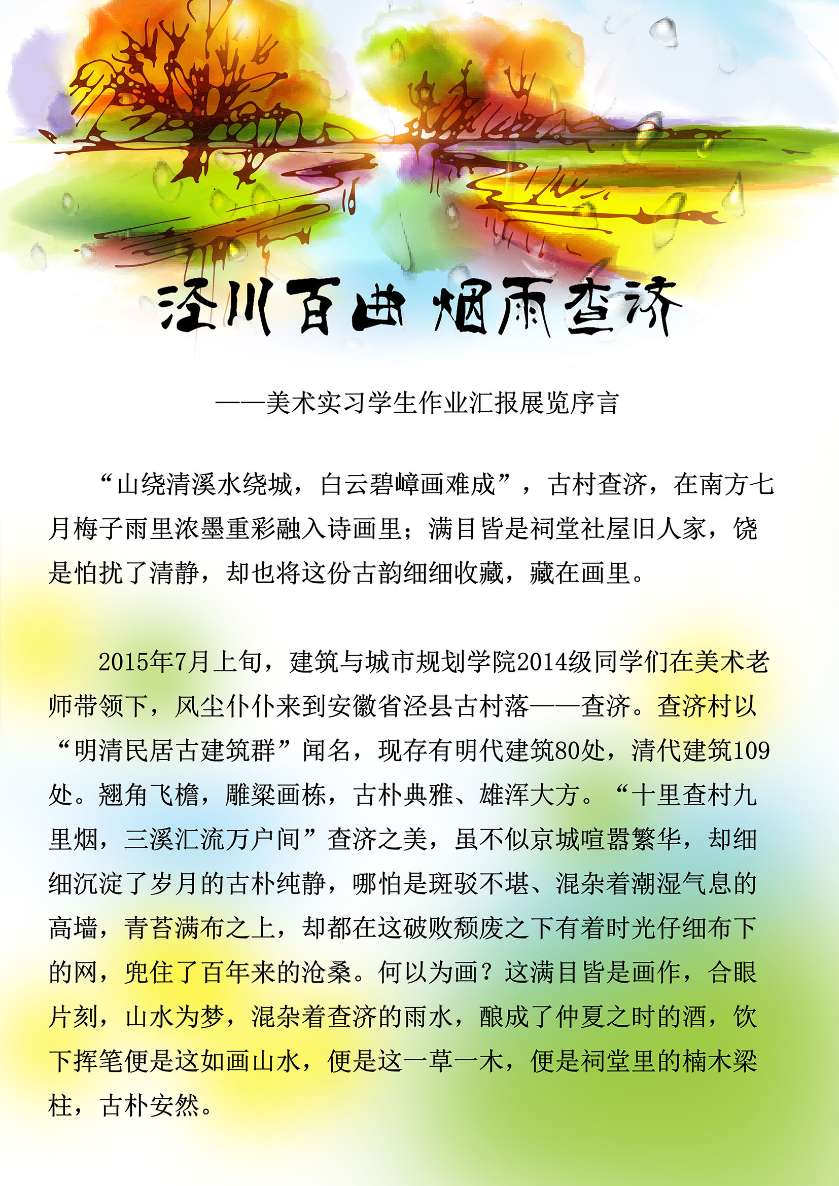 泾川百曲,烟雨查济—— 球盟会2014级员工美术实习作品展