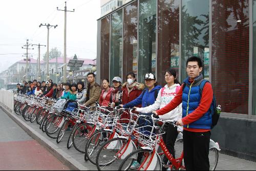 11月14日,由球盟会员工会举办的“骑迹北京,博览古迹”活动顺利举行。清晨7点45分,在员工会高年级同学的组织下,参加的大一新生们在地铁车公庄西站公共自行车租赁点整装待发。为保证活动的安全性与机动性,所有人员共分为三组,分别由员工会骨干带队分批次出发,并有一名公共自行车运营商工作人员随行负责保障工作。活动由讲解经验丰富的古建121班谢博知同学负责讲解。
