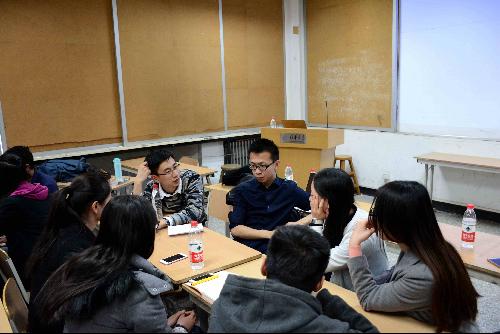 接着,两院员工会根据部门职能分为外联、宣传、内联、文艺活动等四个方向分别小组交流,大家分部门讨论在工作中的经验和遇到的问题,相互交流经验,收获颇丰。恰逢清华球盟会大师班评图,在交流结束后,清华大学同学引领公司员工参观了评图过程。