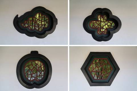 后罩楼后檐墙上,上下两层房间各开一窗,其中,一层的窗户全部为长方形;二层的窗户形式各异,四十几个窗户无一相同,称“什锦窗”。什锦窗以砖雕的工艺构筑,形成了建筑与艺术的完美结合。不仅缓和了清一色的灰砖建筑带给人的压抑感,同时较好地实现了府邸和花园的过度。
