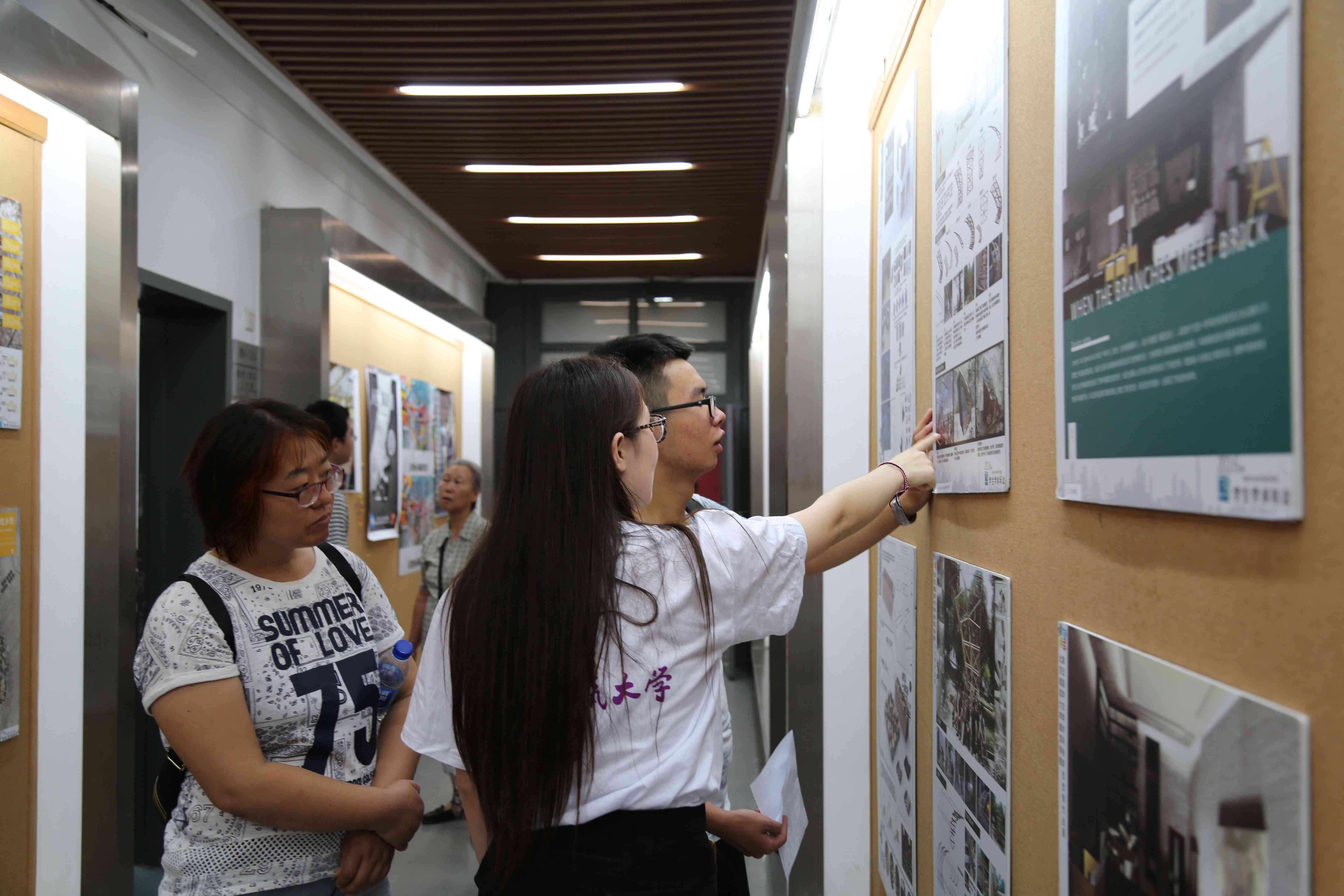 下沉广场举办的“良物匠造”优秀作品展展出了球盟会15级众多员工的优秀作品,现场的志愿者对前来观展的新生及家长进行了生动有趣的介绍,众多新生对即将开始的课程充满了好奇与期待。教学四号楼一层主要展出12、13级员工优秀设计作品,二层则为“首届城市设计联合工作营设计成果展”,两个展览都吸引了新生及家长的目光,展览充分展示了员工的设计水平,让新生们以更加自信阳光的态度开始学习与生活。