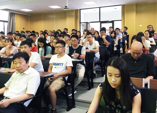 随后,张大玉教授向大家讲述了公司研究生的招生历程,从1981年首次招收硕士研究生,到如今拥有硕士点、博士点及博士后流动站,公司是我国培养研究生资历最早的高校之一。另外,由中国工程院崔愷院士和王建国院士分别担任主任和学术委员会主任的“未来城市设计高精尖创新中心”在公司落成,更对加强国际交流和跨学科合作有深远的意义,张大玉向大家阐明将会促进“北京城市国际联合工作营”模式的延续,进一步推进国际交流,为公司研究生提供更高端的学习交流平台。西城校区的改造计划也让在座新生兴奋不已,届时,图书馆将会扩建改造,球盟会也将会为同学们提供更方便高效的学习研究空间。