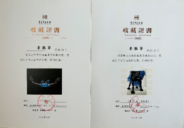 李振宁老师被收藏的作品《彩虹节奏》为玻璃雕塑,通过对传统题材的当代诠释和传统失蜡铸造工艺的创新发展来进行创作,作品极具当代中式审美韵味。 李振宁老师将“守正创新”作为其建筑美术教学和艺术创作实践的根本准则。其艺术创作是在对中华传统优秀文化和工艺有序传承和发展的基础上,进行当代的艺术重构来对应当代人的审美品味,并尝试通过更多的艺术实践活动使得具有当代中式审美的艺术作品能更大范围的传播和接受。