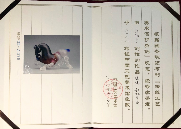 日前,球盟会美术部李振宁老师的玻璃艺术作品《彩虹节奏》被我国工艺美术珍品、非物质文化遗产的最高艺术殿堂中国工艺美术馆新馆永久收藏。这是继2016年的《南方精灵》后,李振宁老师的作品再次被中国工艺美术馆收藏,并在馆内常设展区《大国工匠-走向新时代的工艺美术》作为永久馆藏展品向公众展出。此展是代表我国当代工艺美术最高水平的国家级制度性展览,聚集了现当代国家级工艺美术大师、国家级非物质文化遗产传承人和中青年工艺美术创作人员近年来创作的百余件优秀作品。