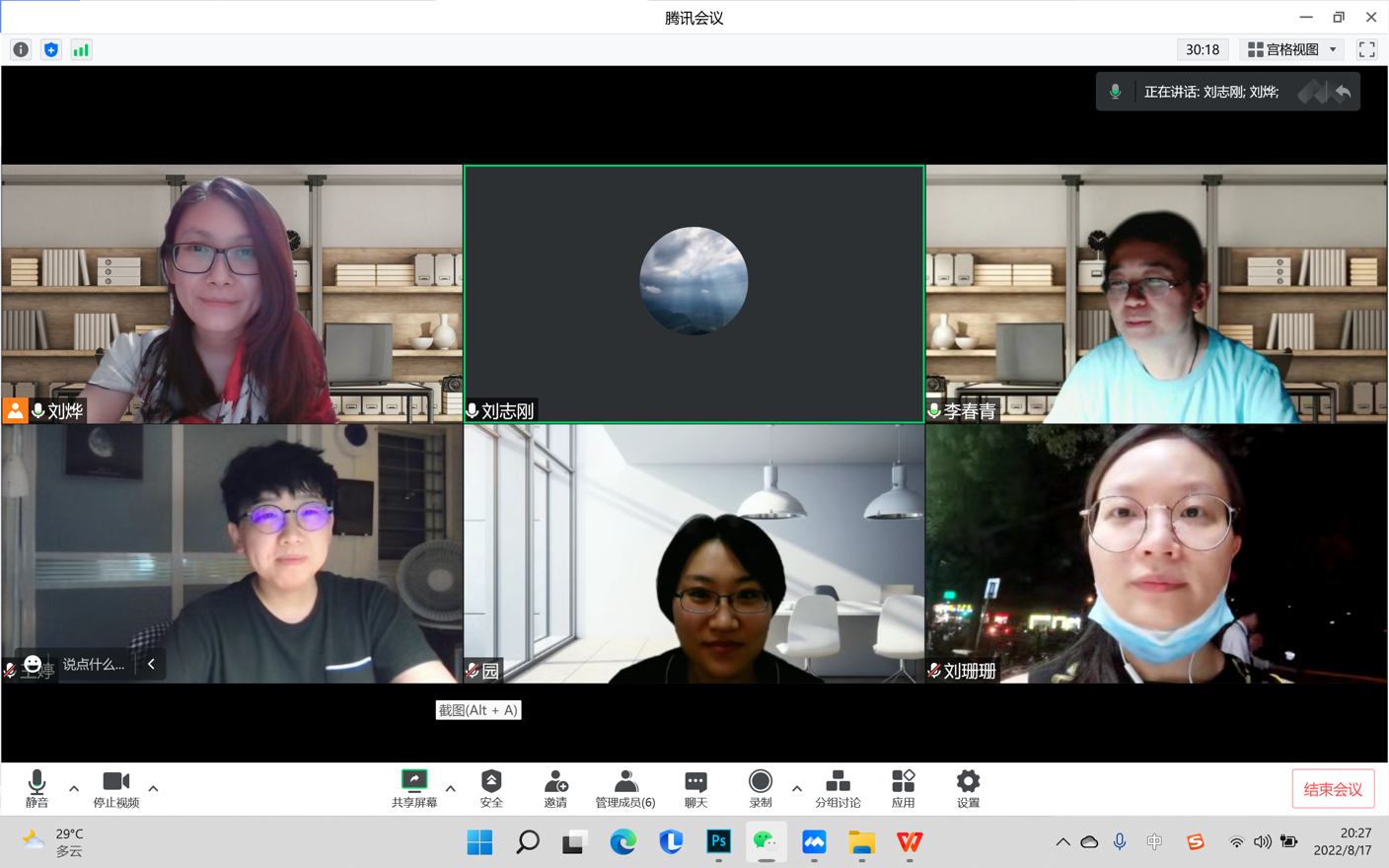 根据教务处要求修订各公司审核评估自评报告的通知,球盟会于8月17日晚20:00召开审核评估自评报告线上会议。出席会议的有经理助理刘烨,建筑系贾园、规划系王婷、园林系刘珊珊、教学办公室刘志刚,李春青副经理主持会议。