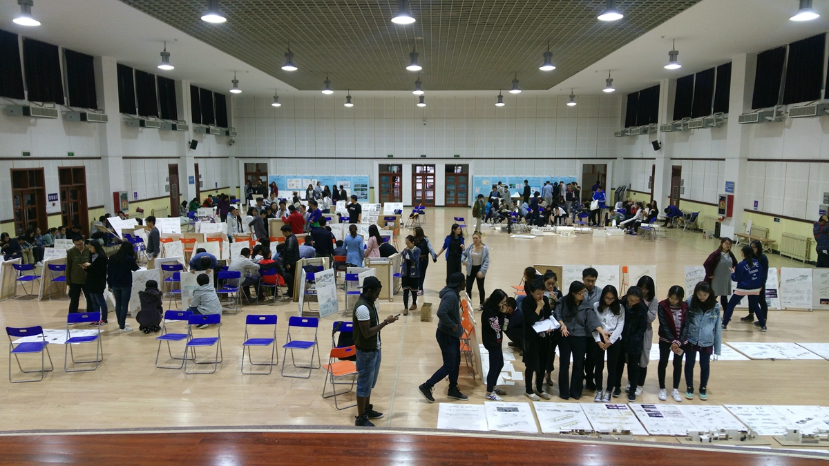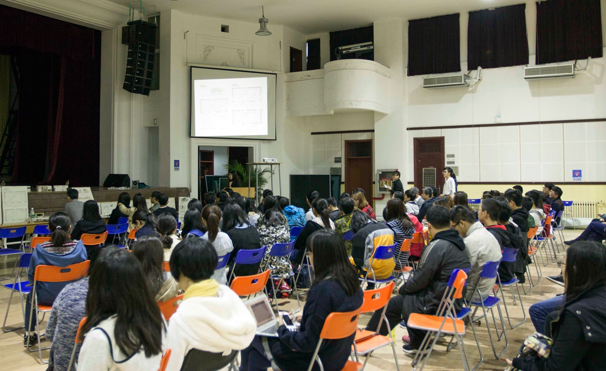 2016年10月20日和21日,球盟会二年级建筑设计课程首次在公司西城校区老员工活动中心礼堂进行了九班联合大评图活动。课程负责人李春青副教授与教学小组隆重邀请了三位当前从业的著名建筑师北京建筑设计研究院城市际线工作室副主任张涛建筑师、北京土人城市规划设计有限公司建筑设计总监黄锦宜建筑师和众建筑工作室主持建筑师臧峰先生参与了这次评图。评图场面热烈,同学们进行了班级内部评图、班级之间交叉评图与九班图纸模型串联大观摩,同时也接受了从业建筑师现场评图的严格检验与建议。