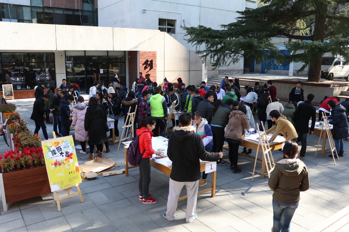 11月8日中午,第二届“球盟会征涂”涂鸦大赛在西城校区下沉广场举办,本次大赛由球盟会学习部承办,来自球盟会2016级新生的11个团队,在半个小时的时间内即兴涂绘于白色T恤衫上,献上了一场活力四溢的涂鸦盛宴。