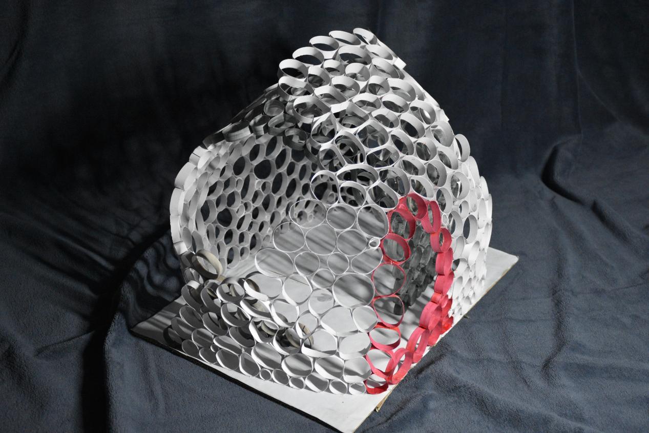 指导老师点评:大小不一的单体变化形成的整体效果较好,但“圆”的单体需要具体实验来测试具体极限尺度。压力不对等的情况形成的切面形成的形体可以成为未来的发展方向。