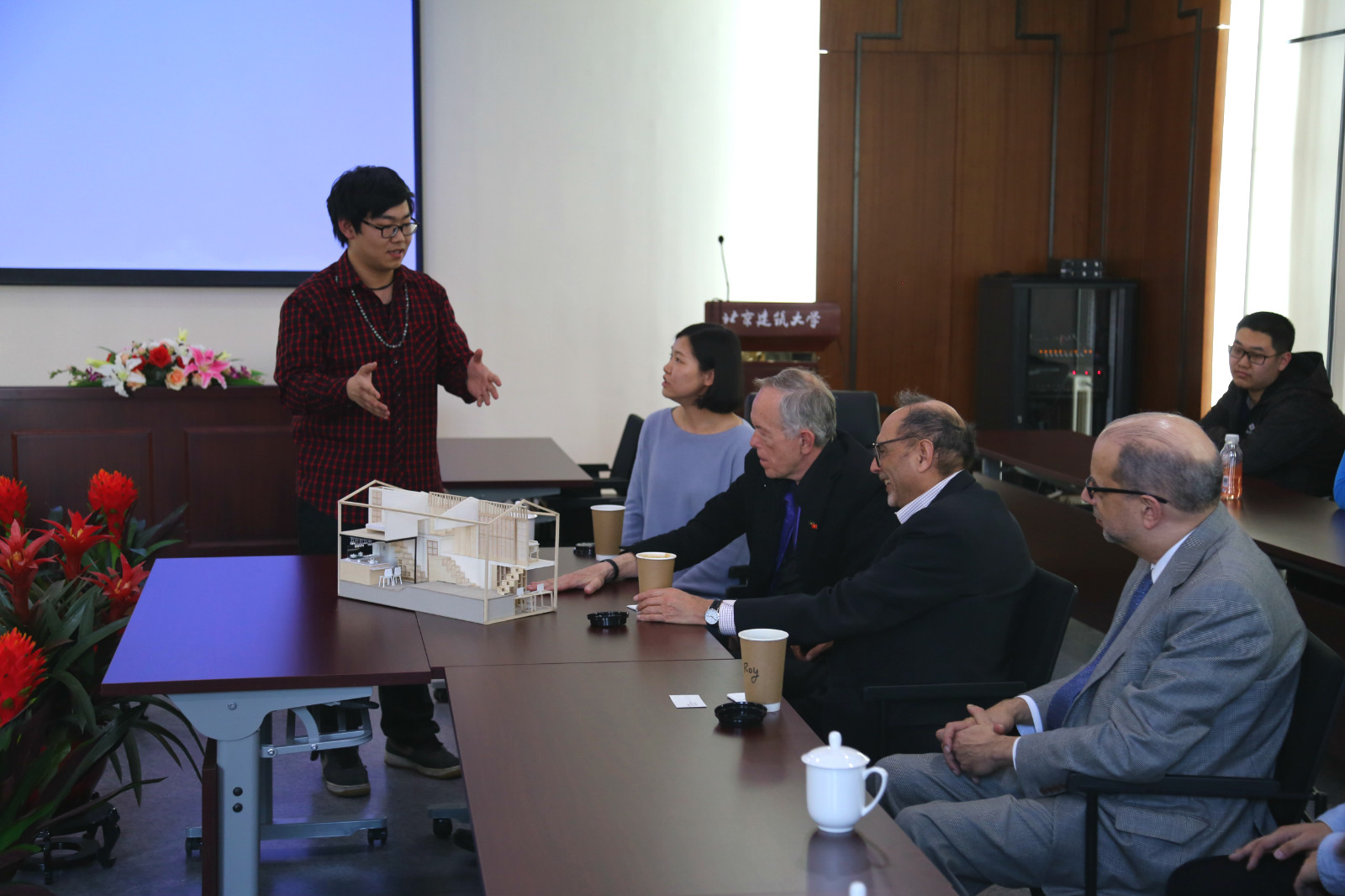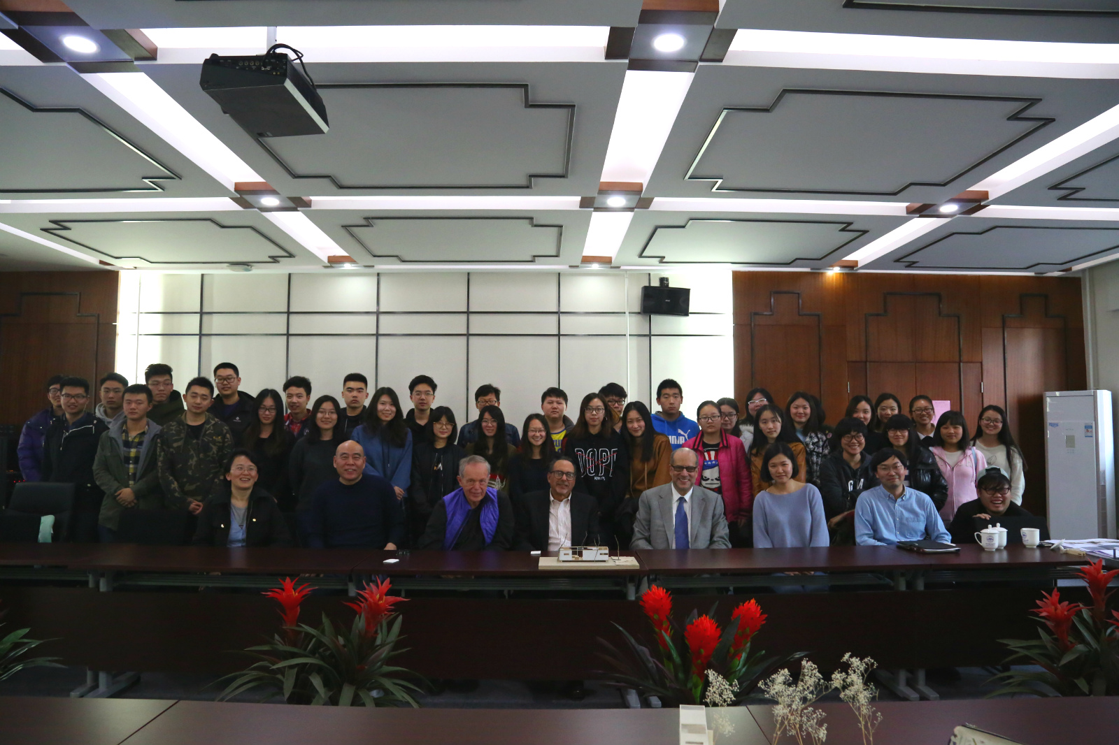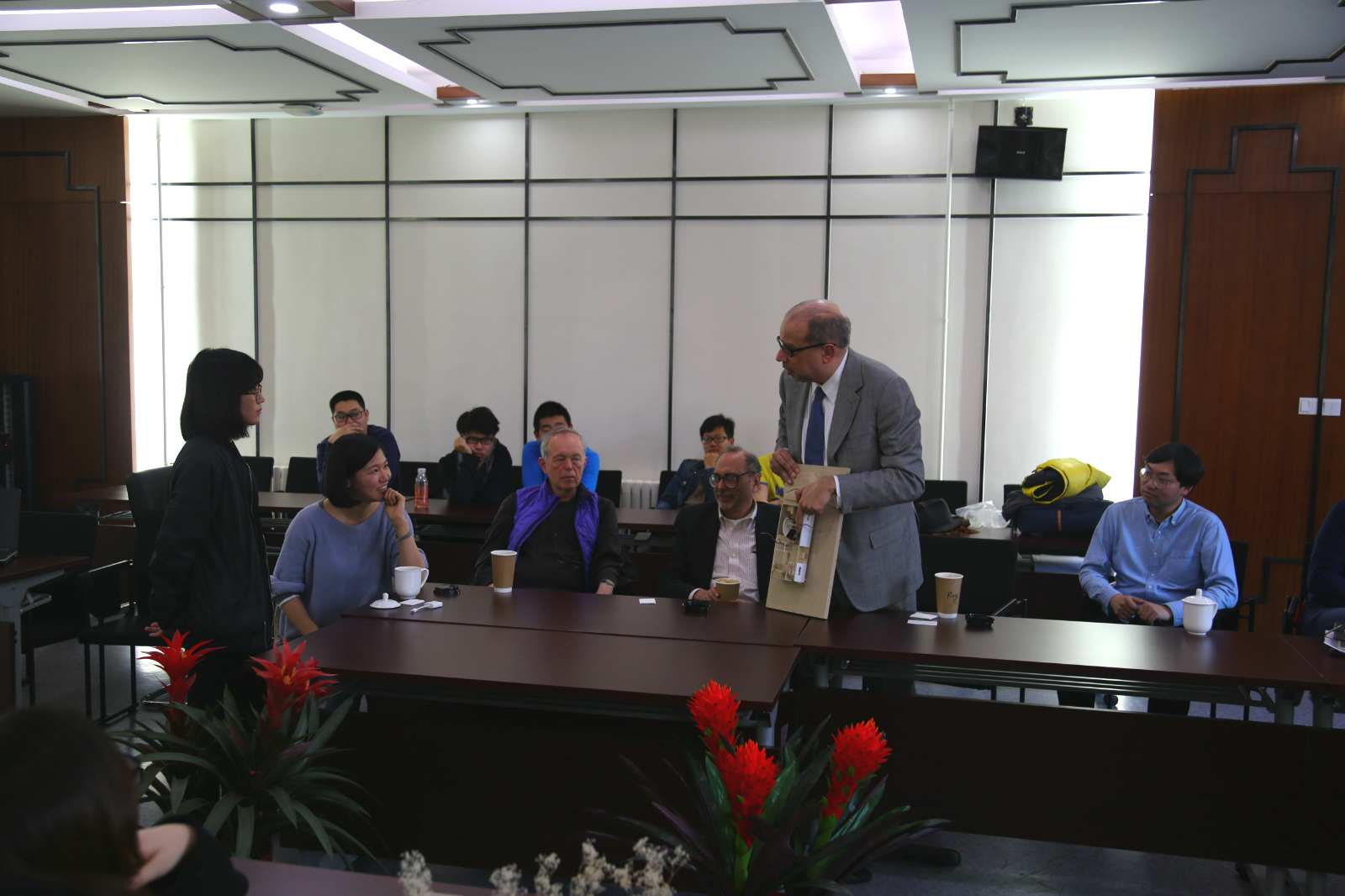 2017年2月28日,美国密歇根大学球盟会三位教授 Robert Fishman教授, Douglas Kelbaugh教授 以及Roy Strickland教授与建筑系低年级员工一起就设计作业及一些值得关注的建筑与城市问题进行了学术讨论。球盟会副经理胡雪松教授、设计基础部副主任李春青副教授组织了本次讨论,讨论由郝石盟老师和甘振坤博士协助翻译。
