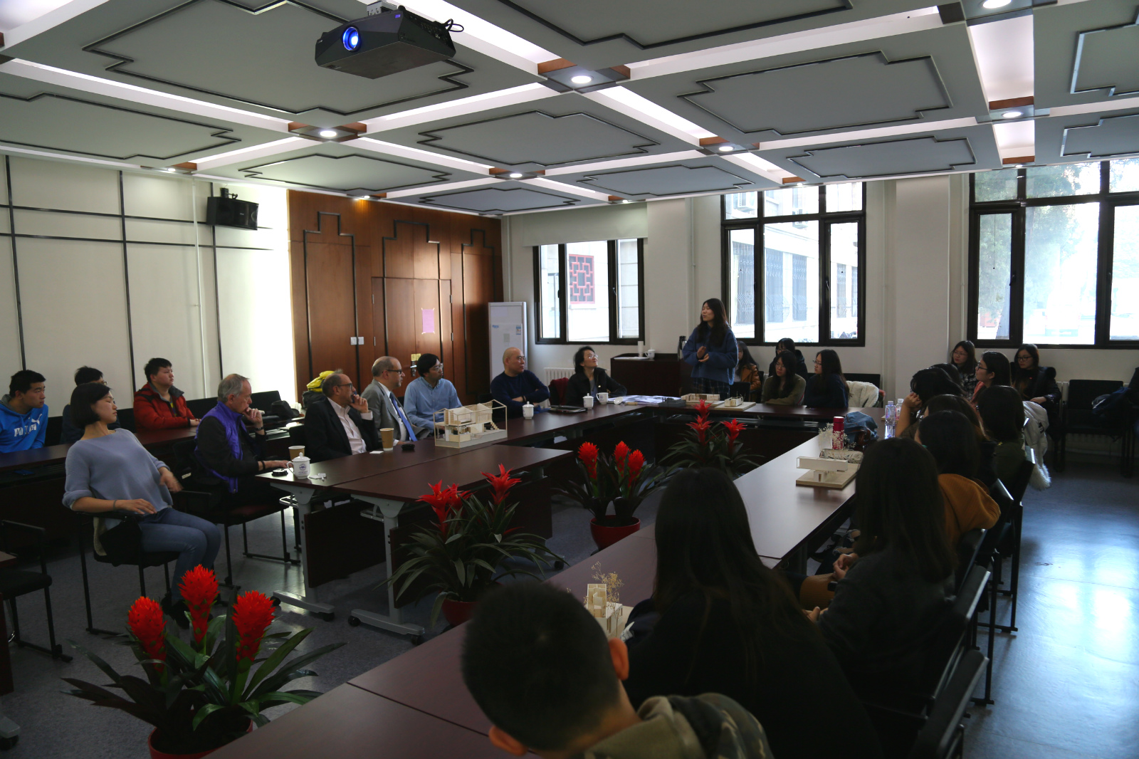 大师班的同学们向三位教授介绍了自己的建筑设计方案,并就方案设计中对建筑空间和城市问题的一些思考向三位教授提问,三位教授结合生动案例,就这些问题展开了深入的讲解,包括历史街区的城市更新问题、建筑空间组织、界面处理与人的行为活动的关系以及城市郊区蔓延的问题等等。