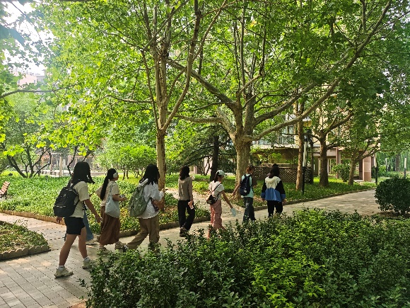 在实践过程中,同学们在刘剑锋老师的带领下,对东湖街道多个具有代表性节点进行深入调研。刘老师首先向大家介绍了街道的基本情况,系统梳理东湖街道的发展脉络与空间肌理,使同学们对其有了总体认识。调研过程中,同学们实地观察各类功能区及节点的实际情况,刘老师结合现场实景进行为大家详细讲解节点的设计理念、实际作用和功能意义。活动最后,同学们交流感悟,提出疑问,刘老师一一耐心解答。