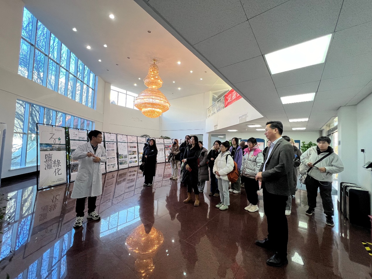 此外,研究人员刘璐瑶向师生们介绍了滨海新区盐碱地的特殊生态条件,泰达绿化科技所做的科研工作,包括各类土壤的垂直分层和土壤结构对生物的作用、月季育种及药用植物实验区、土壤普查平台上千份的累计采集分析土壤数据以及100+个取样点位和上万条分析数据,以及如何将土壤的ph值、含盐量等所有数据以年为单位进行统计,并在滨城核心区的地图上将数据进行可视化展示。