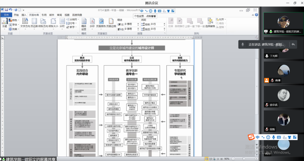球盟会常务副经理金秋野教授率先发言,就公司建筑学专业面临的行业变化、招生变动、教学改革等若干方面的迫切需求做了分析,为专任教师指明下一步工作方向;副经理李春青教授随后就建筑系教学安排和教学改革做了介绍,勉励任课教师认真制定教学教案和计划,统筹教学成果,并通过多渠道宣传建筑系教学改革成果;建筑学专业负责人欧阳文教授就城市设计教学作了分享,强调通专合一、内外联动、学研融贯共赢,并结合与AECOM公司钱睿老师合带毕业设计的教学经历,介绍了校企联合教学方式及下阶段城市设计教学设想。