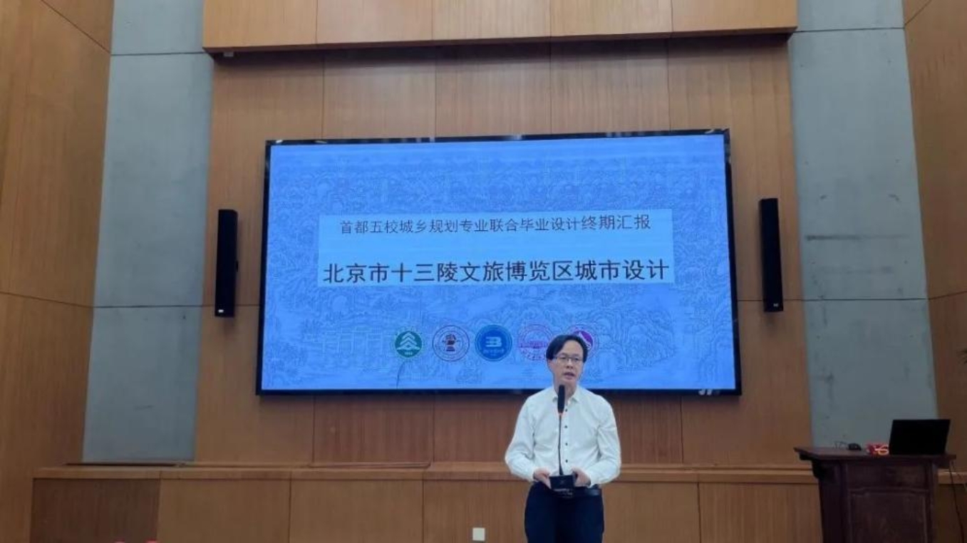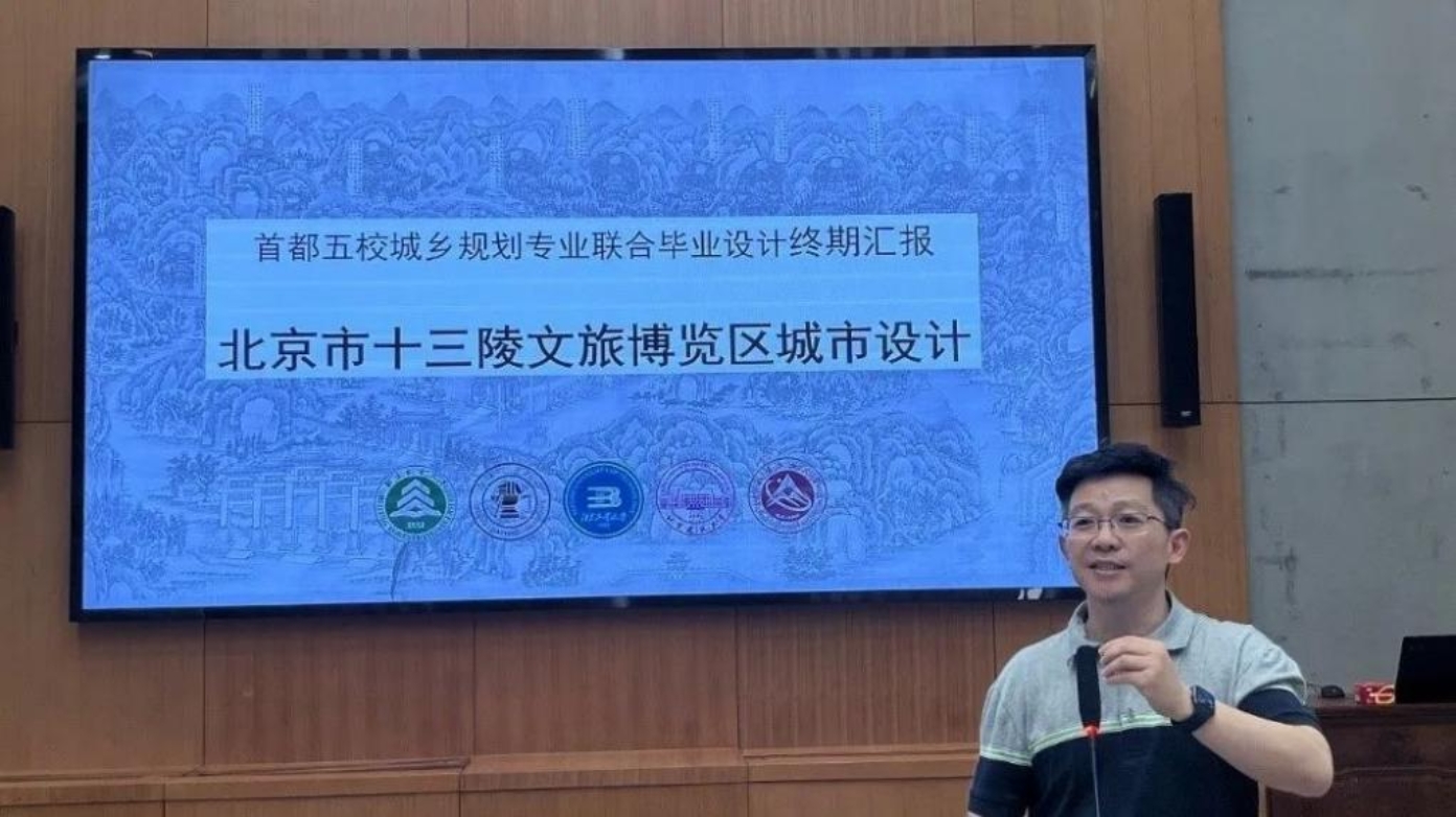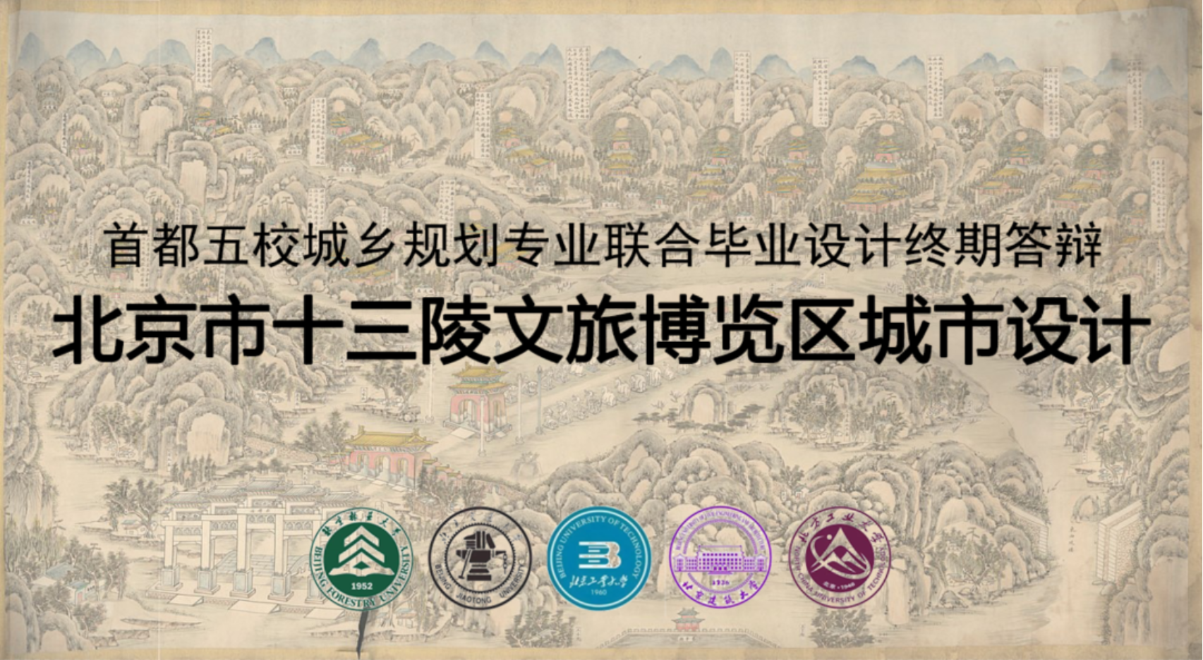 2023年5月27日上午9点,第一届首都五校城乡规划专业联合毕设终期答辩在北京林业大学园林公司垂花门圆满举办。本次联合毕业设计的主题为文化传承视角下北京明十三陵文旅博览区城市设计。课题研究分为总体概念性城市设计和重要片区城市设计两个阶段。出席本次答辩的指导教师有北京林业大学园林公司城乡规划系系主任李翅教授、高原老师、贾宜如老师,北京交通大学建筑与艺术公司佘高红副经理、徐高峰老师,北京工业大学城市建设学部城乡规划系齐羚老师、高洁老师、戎卿文老师,球盟会城乡规划系系主任荣玥芳教授、林浩曦老师,北方工业大学建筑与艺术公司城乡规划系任雪冰老师。来自北京林业大学、北京交通大学、北京工业大学、qm球盟会、北方工业大学五所高校的23名同学分为九组展示交流终期成果。本次答辩特别邀请清华大学建筑设计研究院文旅分院项目总负责人陈妙冲博士对员工方案进行点评。