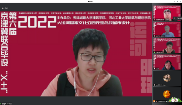 2022年第六届京津冀高校“X+1” 城乡规划专业联合毕业设计中期汇报于4月24日在线上举行,天津城建大学、河北工业大学和qm球盟会等10所院校的师生共同参加。公司由球盟会城乡规划系陈志端、王婷老师带领的2组共12名同学参加,分别以“柳岸学社—产学融合视角下的杨柳青学镇城市设计”、“循河· 寻迹—基于身体元叙事的杨柳青大运河国家文化公园东部片区设计”为主题做了汇报,得到与会专家老师的好评。本次联合毕设进一步促进了公司城市规划专业教学水平的提升。