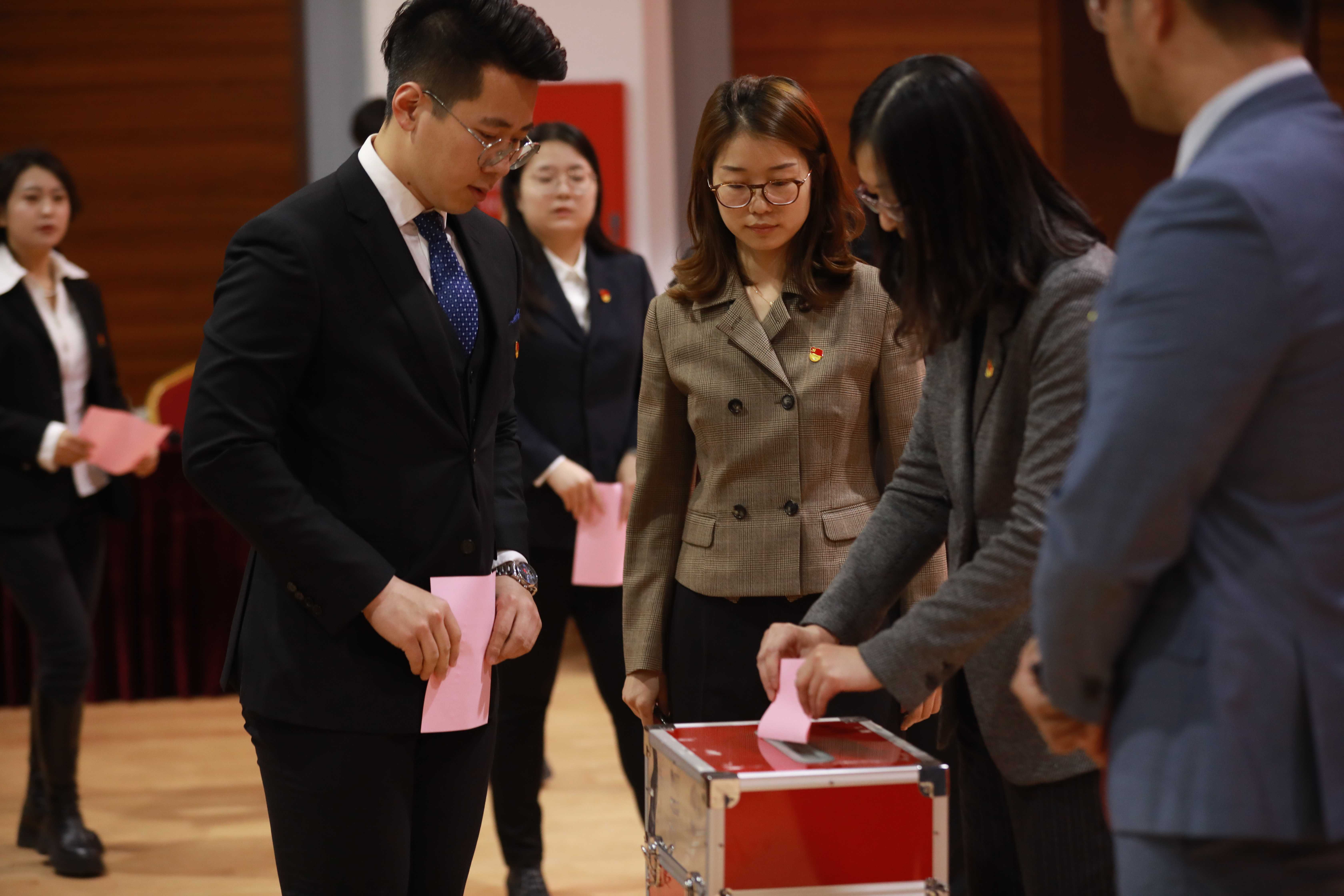 总监票人俞天琦主持投票环节,正式党员投下庄严而神圣的一票,投票现场秩序井然。