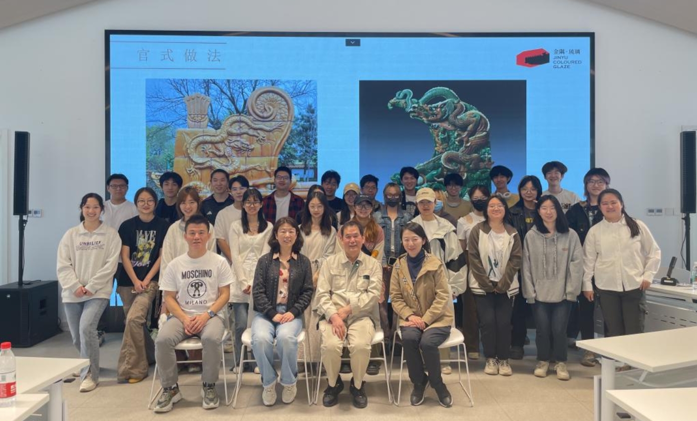 师生参观了琉璃历史博物馆,了解了千年琉璃的薪火传承,了解了自辽代以来京西琉璃的发展历史以及琉璃的制作工艺。展馆内站出来众多瓦件印章,明清时期琉璃构件,历史图片等涵盖了琉璃文化的方方面面。经过脊兽大道,师生来到了生产研发中心,在此对琉璃生产技术有了近距离观看和最直观的感受:车间将“上三作”(吻作、釉作、窑作)和“下三作”(指粗加工、板瓦作、装窑、配料等工种)工艺集于一起,近距离观看到师父们的工作日常。二层则是重现中国皇家建筑标准的官式琉璃构件制作技艺流。