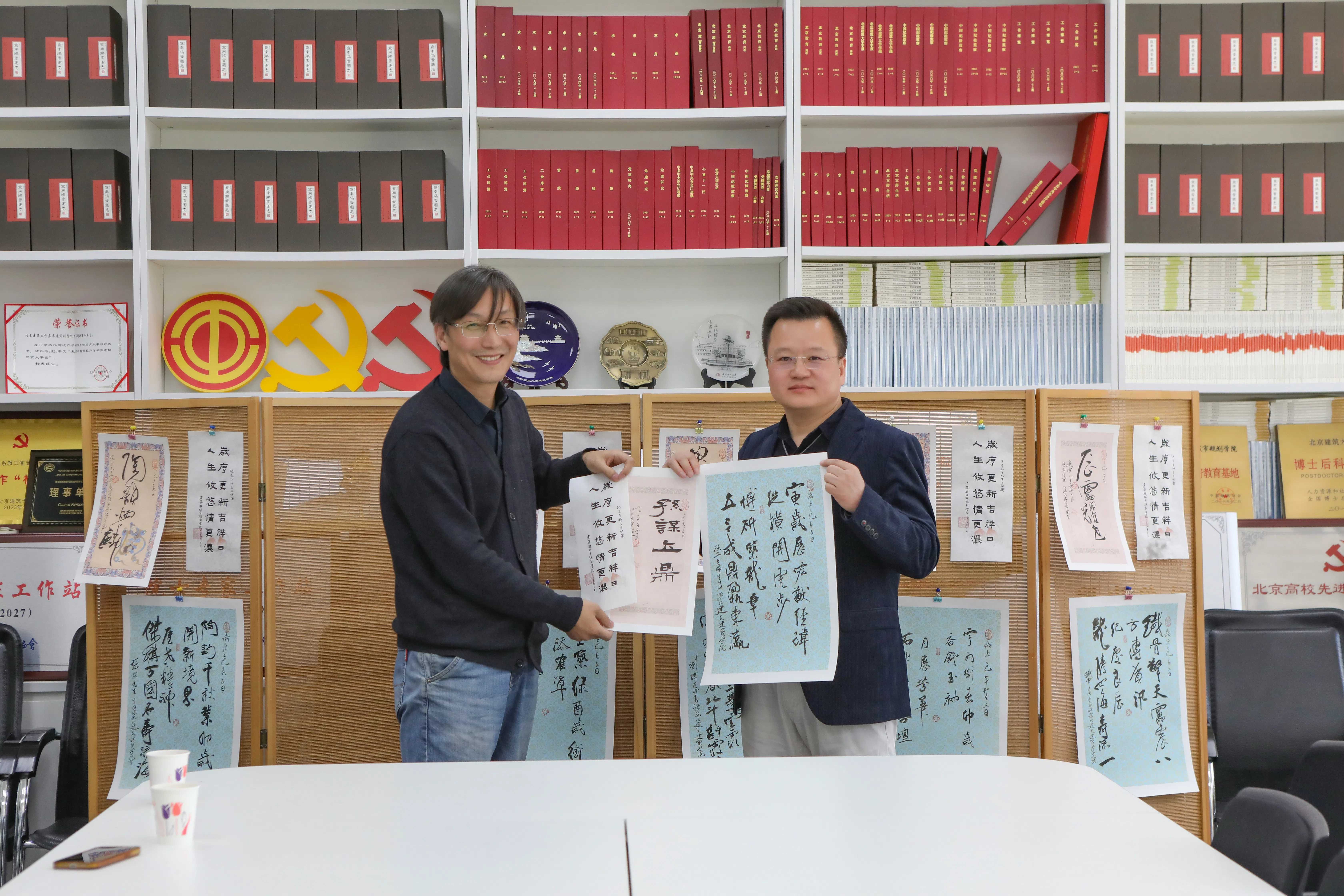 庆祝会“”书画之美“的环节,杨晓老师向各位老师赠送自己创作的以北京老城城门为母题的丝网版画作品,名为:《时光之城》系列作品。孙恩杨老师赠送了书法作品。两位老师向三月生日的每位老师送上了诚挚的祝福。