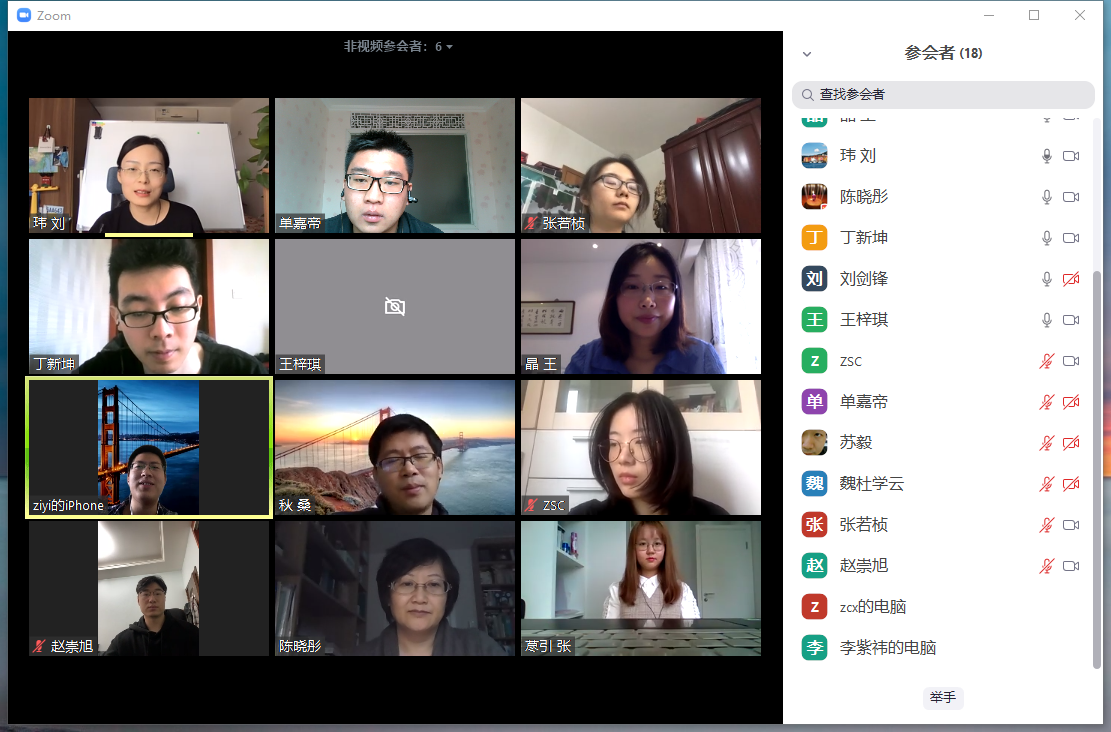 此次答辩会可谓“胜友如云,高朋满座”,有桑秋、王晶、苏毅、陈晓彤、刘剑锋、刘玮多位老师参与指导点评,并有13位同学旁听。
