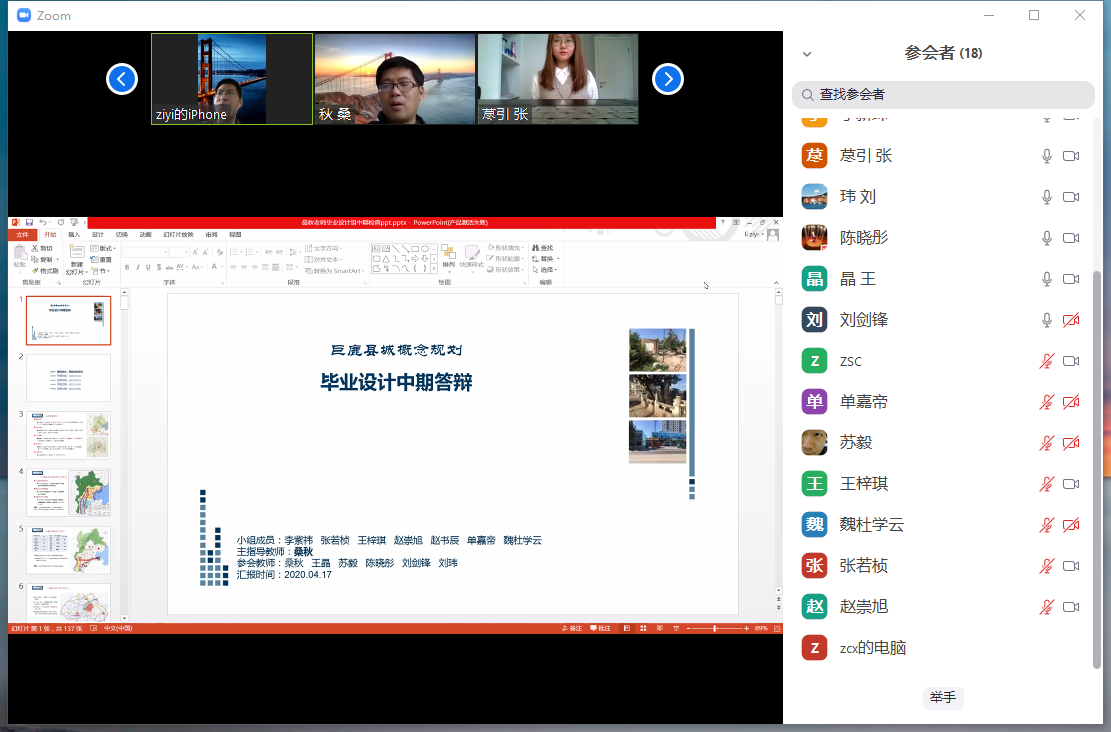 2020年04月17日上午8点,城乡规划系2015级毕业设计“巨鹿县概念规划”组中期答辩在ZOOM会议室进行网络答辩。