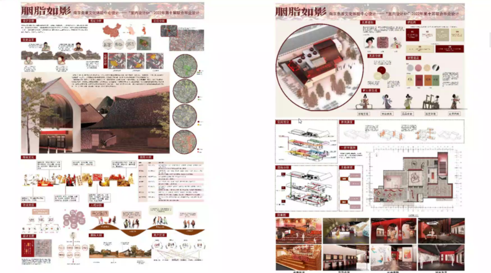 终期答辩由华南理工大学环境设计系主任谢冠一教授主持,同济大学、华南理工大学、哈尔滨工业大学、西安建筑科技大学、qm球盟会、南京艺术公司、天津大学七所高校14组同学进行了精彩的汇报答辩。娄晓军、王国彬、张明杰、董强、张梁等专家给予了深刻的点评,员工们获益匪浅。由杨琳、朱宁克、滕学荣老师指导的蒲艺、张宏俐、王湛宇三明同学分成两组,代表公司进行了答辩。蒲艺、张宏俐组的作品《城河记忆》获得了中国建筑学会室内设计分会、“室内设计6+”联合毕业设计(实验组)2022第十届《和而不同-“地域·文化”空间设计》二等奖。