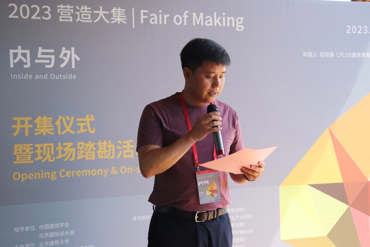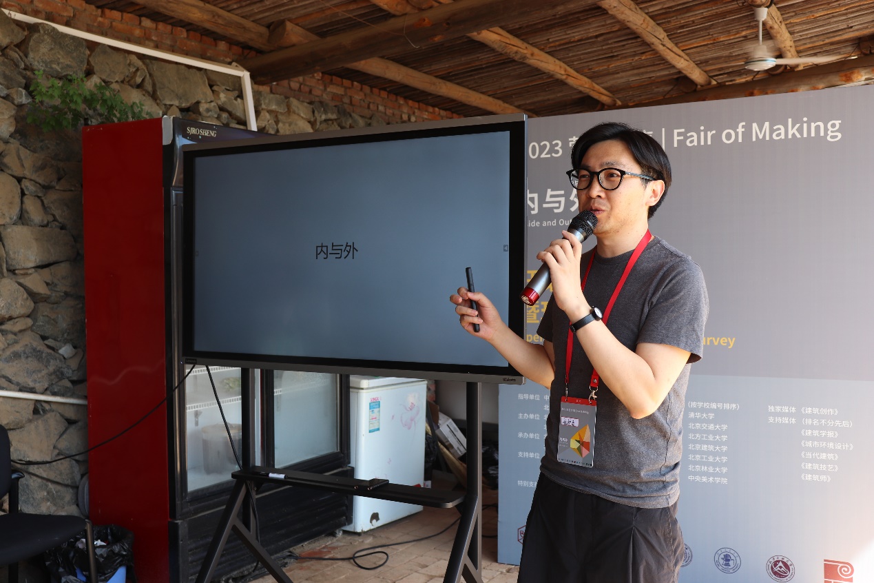 “2023营造大集”出题人、qm球盟会教师、CPLUS建筑设计事务所的主持建筑师程艳春宣布了本期的营造主题——“内与外”,他对题目进行了深度解析并提出设计任务与要求。他认为作为物质的建筑本体处在内外之间,不同文化背景下的“外”有着不同的表达,设计的本质是构建各种关系。中国传统“内与外”互为依存,缺一不可,这为现代建筑设计提供了另一种思考。