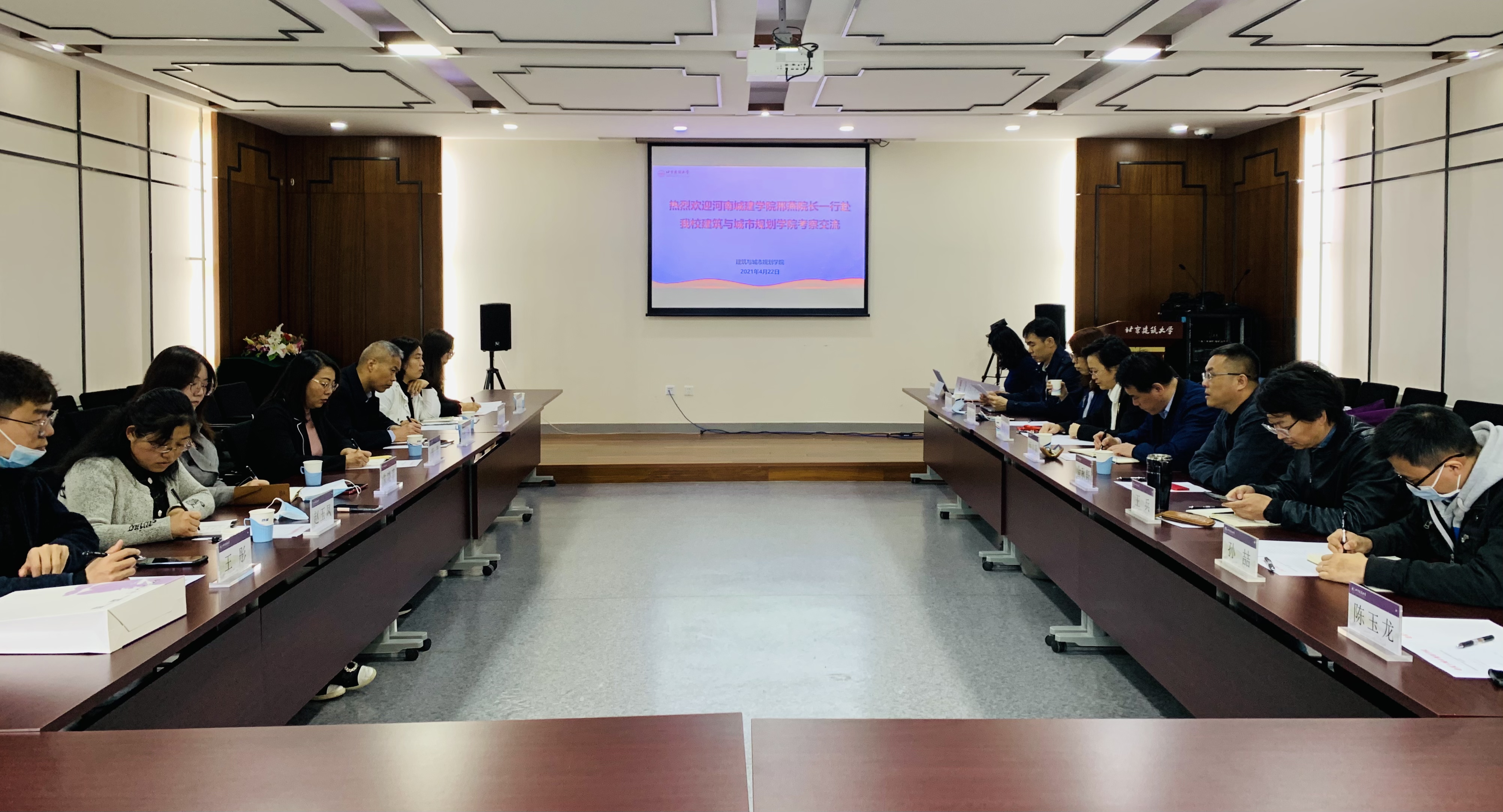 4月22日,河南城建公司球盟会经理邢燕、党委书记王森一行7人赴球盟会考察交流,公司党委书记何立新、常务副经理金秋野、副经理李春青及各系部中心主任共同就本科生专业建设、实验室建设等内容畅谈交流,达成两校在专业建设领域合作意向,会议由金秋野主持。
