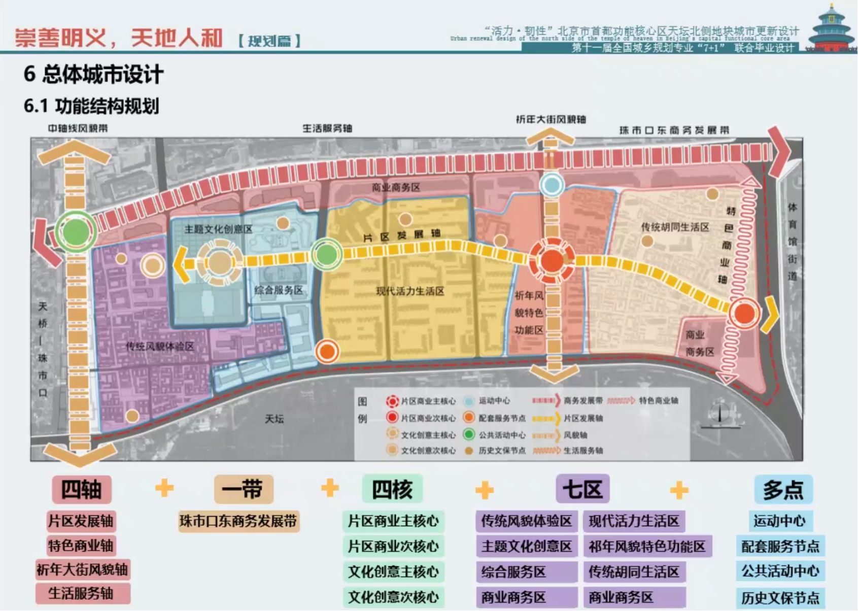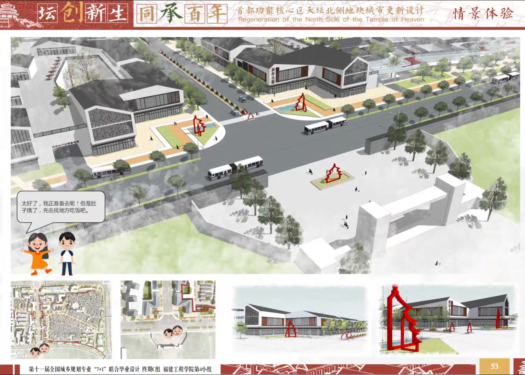 5日下午,各组陆续顺利地完成答辩,本次联合毕业设计成果答辩活动至此顺利完成。本次联合毕设经历选地、开题、中期、答辩四个环节,克服疫情所带来的教学困难,师生参与的积极性高,外校师生在防疫政策允许前提下,还踊跃地来北京基地现场做出了实地调研。各校对本次毕设选地——世界文化遗产天坛北侧及南中轴线东侧的城市地块,提出了各具特色的城市设计方案:一些规划成果运用了大数据等新技术,提出有启发性的新方法;一些规划成果深入基层,有强烈的人文情怀;一些规划成果试图整合产业和空间,注重城市更新中的经济性等等——虽手法略显稚嫩,但表达丰富多彩,积极回应了“活力”和“韧性”两大主题,为首都功能核心区城市更新发展提出了不少有创新性的设想,难能可贵,成果获得了与会行业专家的正面评价。
