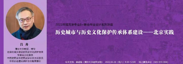 本年度的毕业设计选题为“传承与创新——城市原点与当代生活”,各院校分别选择了北京、上海、天津的特色历史保护街区、地段为专题,进行分课题研究。2022年2月26日启动了线上正式开题会,公司参加了北京课题组,以北京中轴线申遗关键地段节点整治为设计课题任务。课题组总负责人清华大学韩孟臻老师为此课题做了充分准备,邀请了很多高校著名专家学者、校外专家做指导和线上专题讲座。清华大学吕舟教授针对此题目做了线上专题讲座,详尽介绍背景。球盟会张杰教授在线上开题会上,做了题为“遗产融入当代,塑造未来——更新时代的探索”精彩报告。