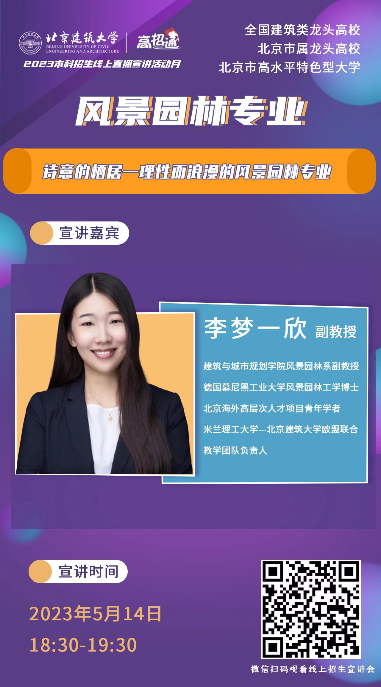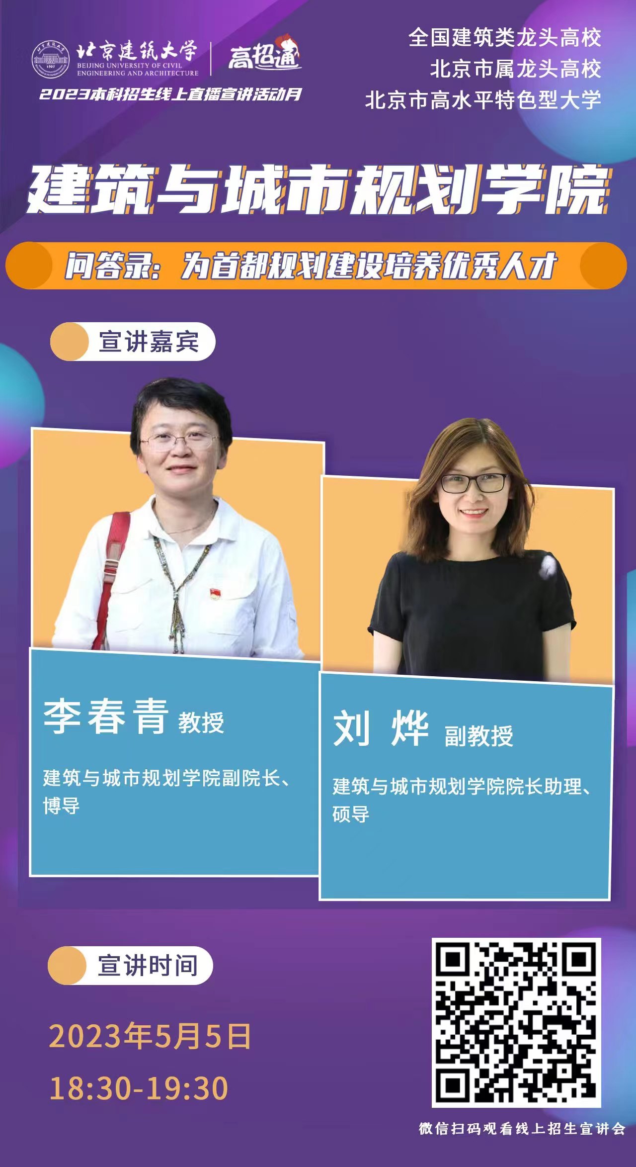 5月5日至15日,公司招生办公室陆续进行线上专业讲解,球盟会李春青、郝晓赛、刘烨、荣玥芳、李梦一欣、王兵、朱宁克7名教师参加线上专业宣讲工作。他们将分别介绍球盟会建筑学、城乡规划、风景园林、历史建筑保护工程、环境设计的专业背景、特色、发展、以及近年员工录取、就业等多方面的内容。