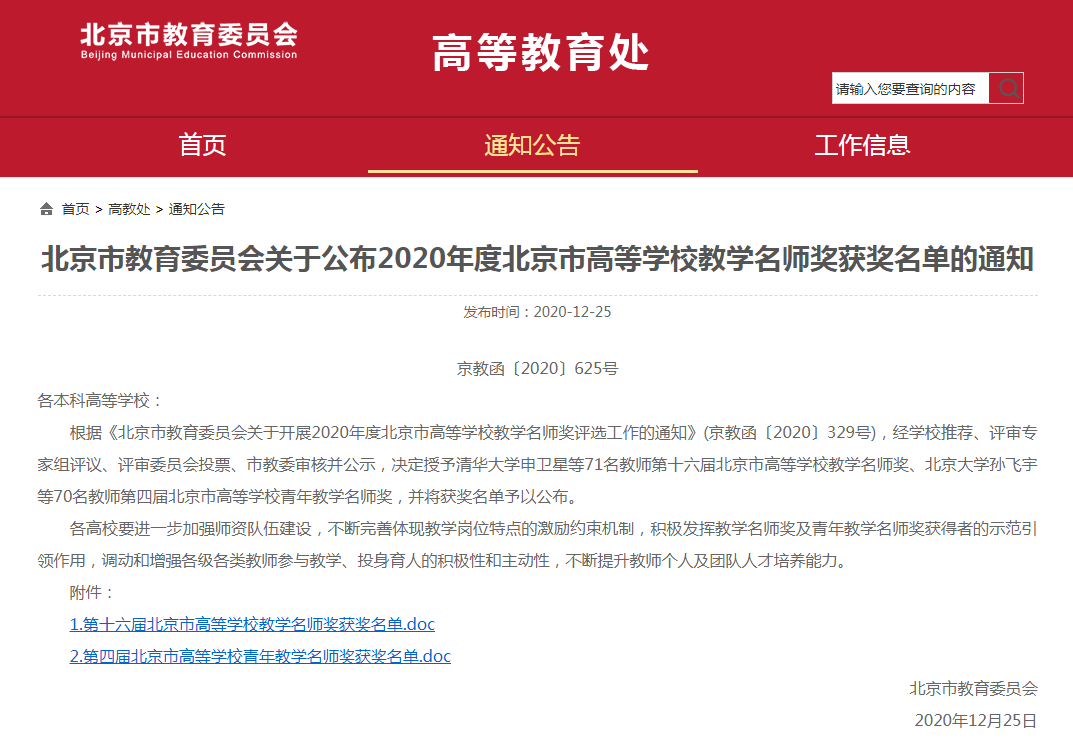 北京市高等公司教学名师奖评选由北京市教委主办,旨在深入贯彻落实全国、全市教育大会精神,发挥教学名师的示范榜样作用,深化公司产品改革,促进高等教育内涵发展。球盟会将进一步总结经验,凝练优势,充分发挥青年教学名师的示范引领作用,引导、激励广大教师更加积极投身本科教学,实现“名师”与“金课”的互促、共建、共强。