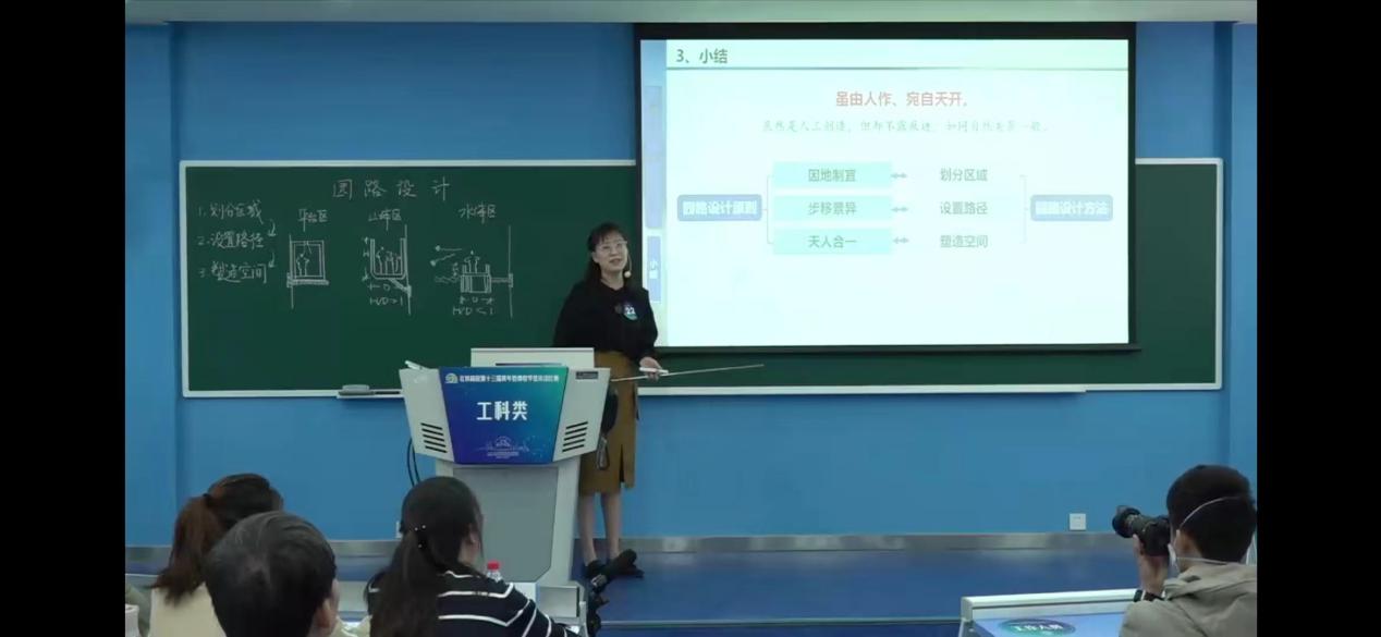 北京市青年教师教学基本功比赛(工科组)教学展示环节比赛于2023年10月11-13日举行,10月12日上午8:30,球盟会组织青年教师于西城校区教1楼-318教室统一观看公司参赛选手李露老师《风景园林工程与管理》课程。李露老师以《桃花源记》作为引入,深入浅出地讲解了上海辰山植物园矿坑花园案例,总结出“划分区域、设置路径、塑造空间”的园路设计“三步法”,认为好的风景园林设计师应该达到改造--融入--升华“三境界”,对员工们提出了殷切期望,收获现场观看老师的一致好评。