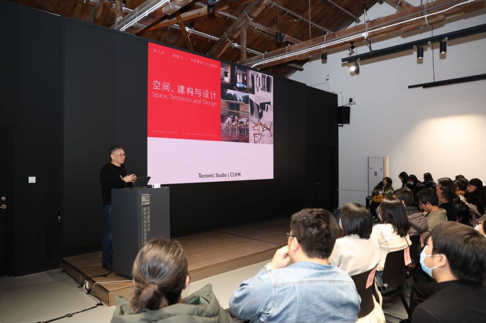 顾大庆围绕空间知觉、建筑师看待空间的方式、空间组织策略、如何做有关空间的设计四个问题展开,系统剖析了知觉-认知-策略-方法这一系列空间组织核心内容。讲座从马蒂斯的绘画切入,阐释了现代绘画中的“图”与“底”、形式-空间、积极-消极关系,并举例论证了图底关系在空间知觉转换中的重要作用。顾大庆认为,阅读平面的过程就是阅读点、线、面的过程,站在虚实转换的视角阅读空间可以将由点、线、面组成的图形划分为包裹性空间和流动空间两类,包裹性空间更强调完型,流动性空间则以透明性为代表,两类空间在特定的图底关系下可以互换,针对空间的操作是关键。顾大庆认为,形式是追随工作方法产生的,以模型作为设计启动时,通过概念-单一材料的抽象-多种模型材料表现-建筑材料的建造这一流程,可以实现抽象概念、材料特性、空间功能、场地和建造等多种因素的综合考量。