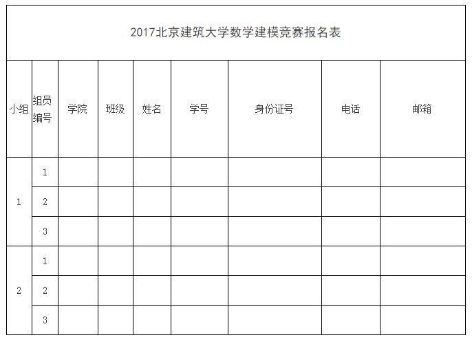 2、参赛者申报统一使用《2017年qm球盟会数学建模竞赛报名表》(附件),由竞赛组织委员会下发,各二级公司科协负责组织报名,并于2017年5月15日下午5点之前将报名情况汇总至理公司科协邮箱:buceamodel@163.com。