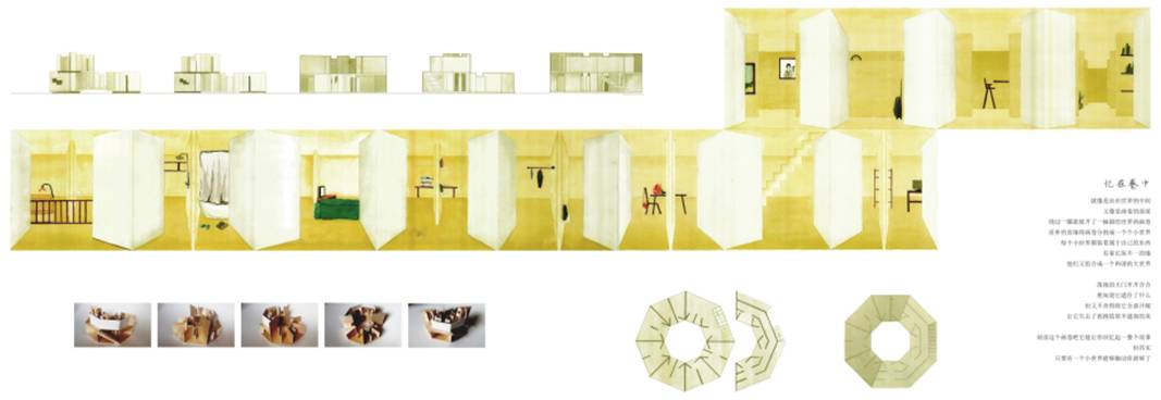 总平面图、剖面图、剖透视图和模型照片(图纸比例、模型比例自定),及其他作者认为必要的表达设计理念和策略的分析或示意图;200字以内的设计概念说明。