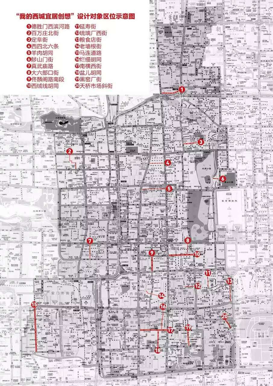 我们为参赛者提供了20个城市街区胡同,参赛者可任选一个或多个,作为设计对象或设计背景地段。