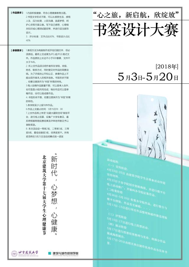 2.所上交作品须注明作者所在公司、班级、姓名、联系方式,同时提交对作品的简要说明,为了评奖的公平和公正,参赛作品上不能出现作者本人的相关信息,书签形状不限但注意其作为“书签”所需的特性
