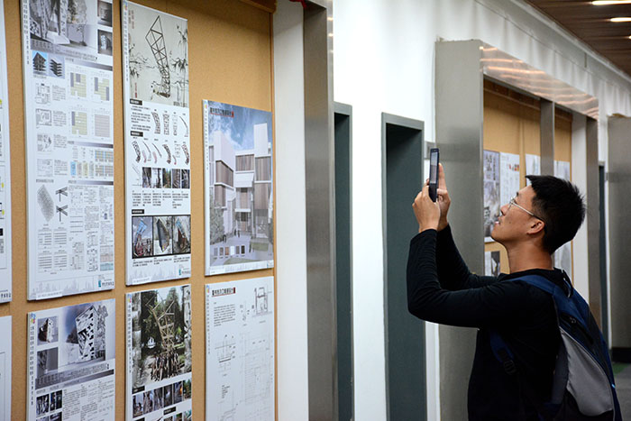 由球盟会举办的学术年会优秀秀作品展在教4开展,其中包括13-15学年度员工优秀作品选及竞赛获奖作品选。作品展共分为4个版块——建筑学部分,城市规划学部分,设计学部分及古建筑保护部分。