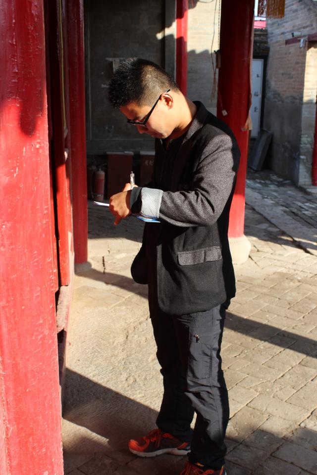 此次培训课程10月23日——10月30日为现场实习阶段。2017年10月23日上午8点从qm球盟会(西城区),乘坐大巴车出发,中午2点左右抵达了全国重点文物保护单位最多的县城——河北省张家口市蔚县。下午先由田林老师为我们大家讲述了古建筑勘察设计制图方面的知识。然后在当地文物局领导带领下参观了蔚县博物馆。 次日,刘志刚、陈雳老师带我们各小组去往蔚州古城进行现场任务分配,并于即时开始工作。
